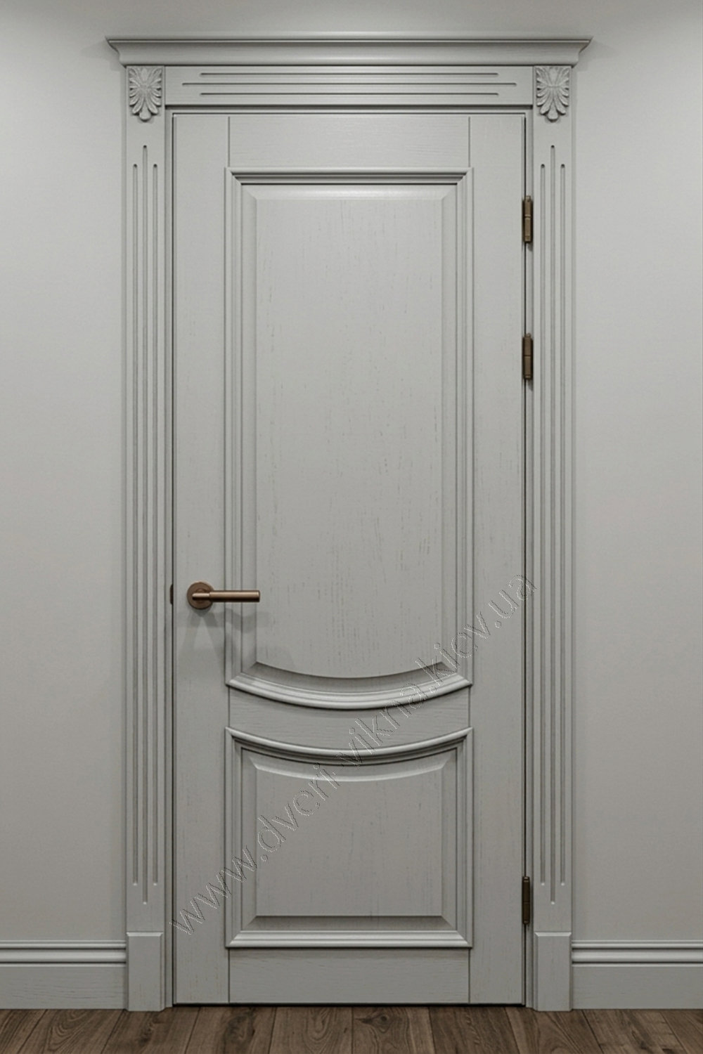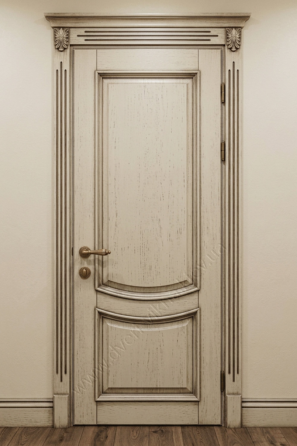ДЕРЕВЯННЫЕ ДВЕРИ В ИСПОЛНЕНИИ - "ЛЮКС"Эта классическая модель отличается изысканным сочетанием строгих канелюров на наличниках и изящных резных розеток. Светлое покрытие с эффектом патины выгодно подчеркивает глубокую текстуру филенок, придавая полотну благородный антикварный вид. Массивная конструкция и аристократичный дизайн делают такую дверь центральным декоративным элементом любого классического интерьера. |