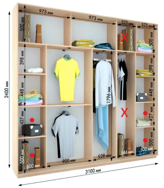 Четырёхдверный шкаф-купе 3100*450*2400мм.