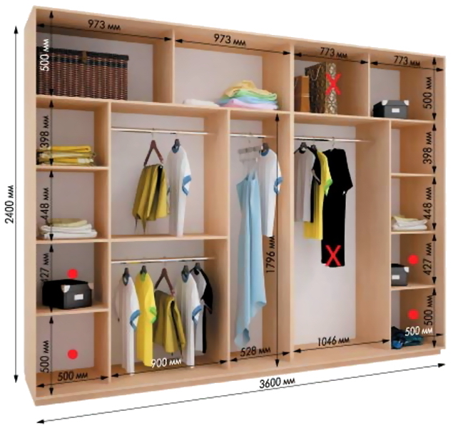 Четырёхдверный шкаф-купе 3600*600*2400мм.