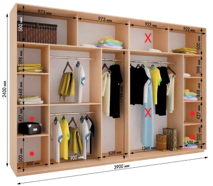 Четырёхдверный шкаф-купе 3900*600*2400мм.